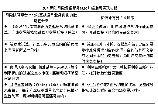 2024年5月20日,上海清算所积极响应市场需求、契合业务发展需要,正式推出风险试算平台“北向互换通”配套服务升级版本及标债计算器2.0版本,风险增值服务进一步提质增效。