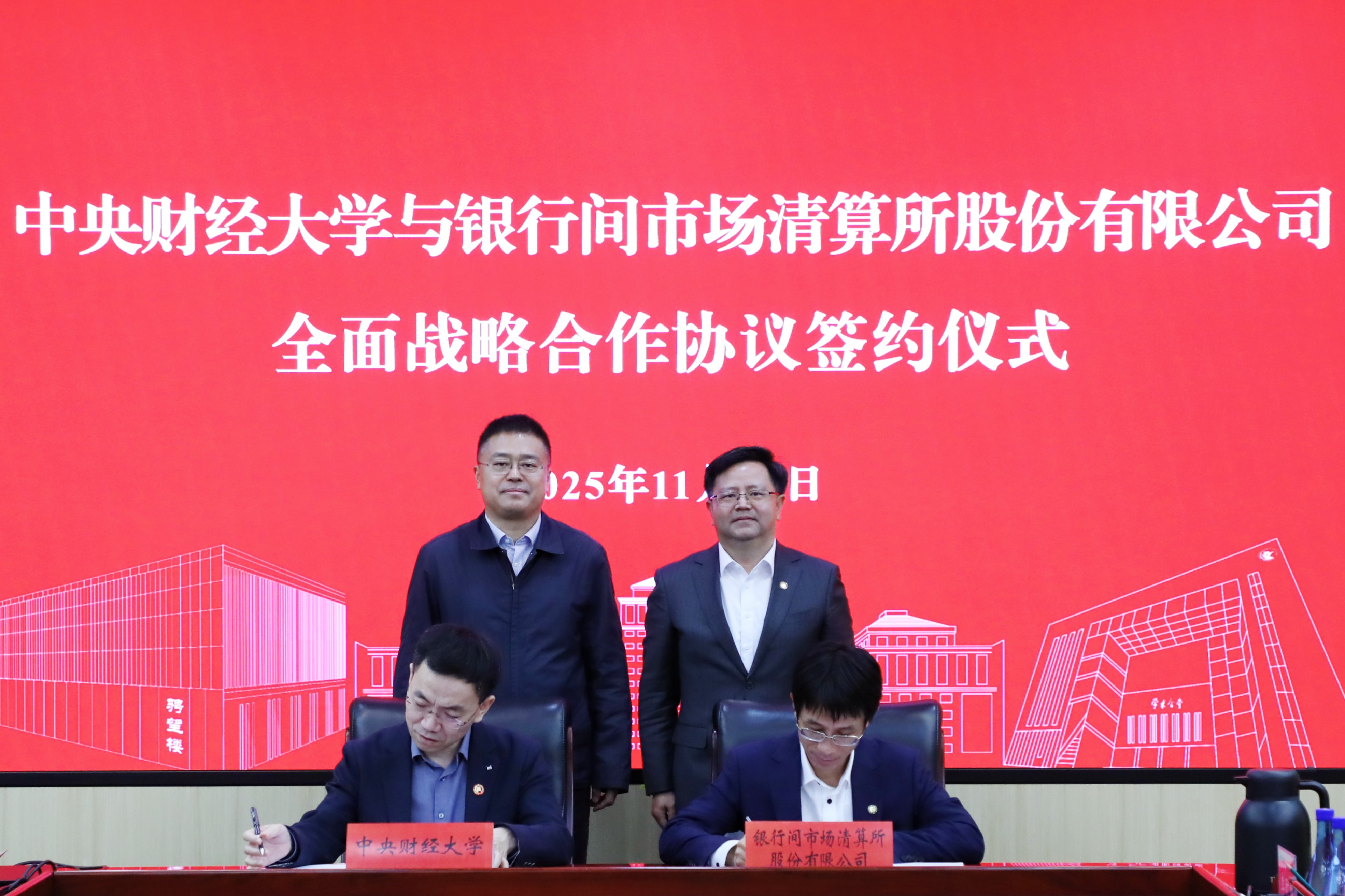 2025年11月27日,上海清算所与中央财经大学在北京签署全面战略合作协议。中央财经大学党委书记吴国生、党委副书记杨莹、副校长李建军,上海清算所董事长马贱阳、副总经理黄宁出席签约仪式。