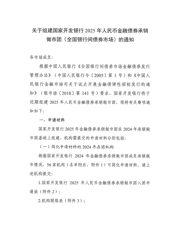 关于组建国家开发银行2025年人民币金融债券承销做市团(全国银行间债券市场)的通知