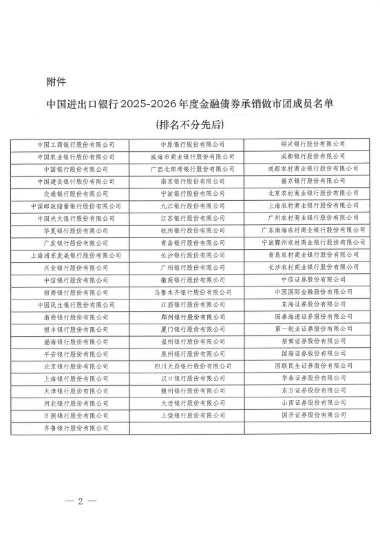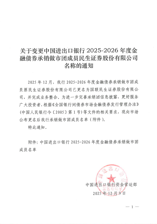关于变更中国进出口银行2025-2026年度金融债券承销做市团成员民生证券股份有限公司名称的通知