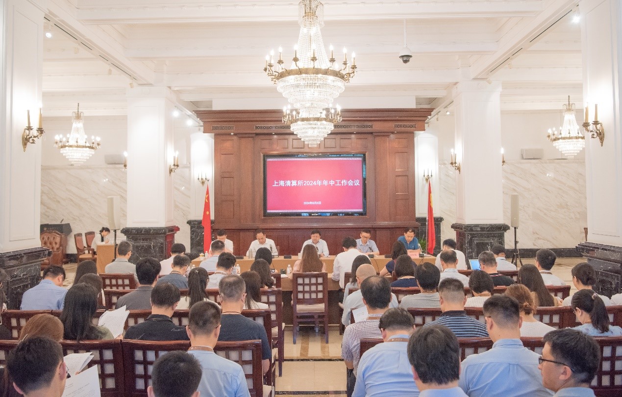 2024年8月5日下午,上海清算所召开2024年年中工作会议。会议深入学习贯彻党的二十届三中全会精神,认真落实2024年下半年中国人民银行工作会议部署,总结上半年工作,结合新形势、新要求,部署下半年工作。党委书记、董事长马贱阳作工作报告,党委副书记、总经理汪洪波传达总行会议精神,党委委员、副总经理戴德毅、王维强,党委委员、纪委书记郭勇出席会议并讲话。
