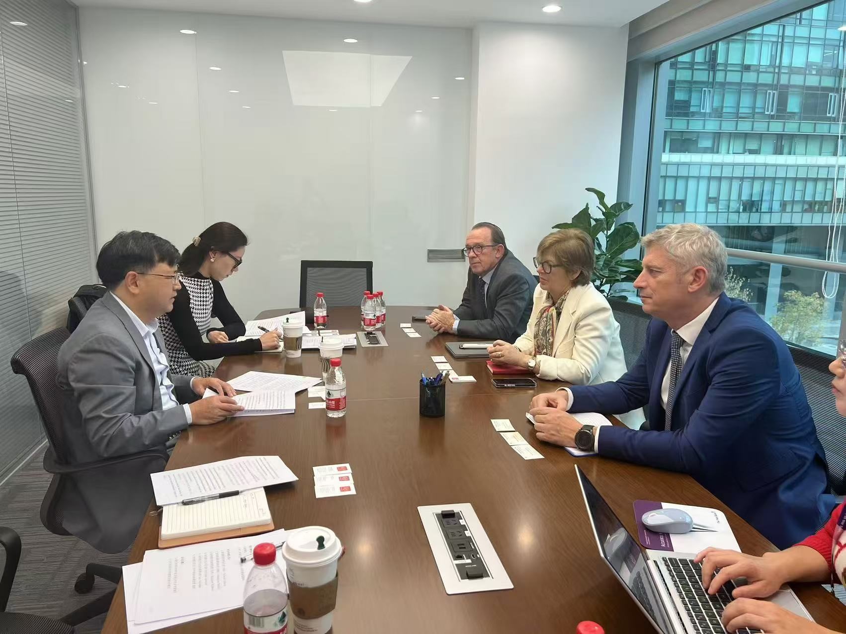 10月21日,马贱阳董事长在SIBOS年会期间会见明讯证券首席执行官Samuel Riley一行。双方就国际业务开展情况、国际投资者业务习惯和主要需求、未来合作方向等内容进行了讨论,并一致同意将持续保持交流,进一步深化跨境业务合作。