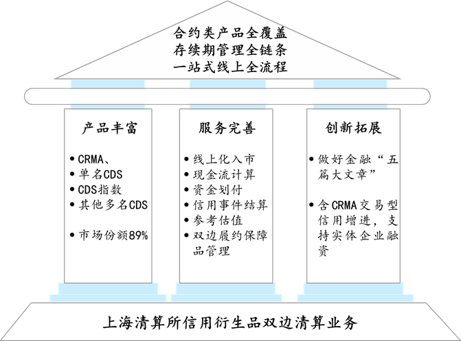 信用衍生品作为金融市场重要的交易定价和避险工具,其现金流计算、估值定价、信用事件管理、交易对手信用风险管理等存续期流程较为复杂。为提升清结算效率、减少清算纠纷、提高市场透明度,上海清算所于2017年推出合约类信用衍生品双边清算。经多年创新发展,已实现合约类产品全覆盖,市场份额约89%,覆盖信用风险缓释合约(CRMA)、单名CDS,及高等级CDS指数、民企CDS指数、长三角CDS指数等全部合约类产品,2025年上半年约89%的合约类产品交易通过上海清算所双边清算完成;线上化程度不断提高,满足市场多元化存续期管理需求,已支持清结算、估值盯市、双边履约保障品管理等环节的线上化处理;覆盖标的持续拓展,着力做好科技金融、绿色金融等“五篇大文章”,为挂钩科创债、绿债等标的的CRMA、单名CDS交易提供双边清算,为债市“科技板”建设赋能、支持绿色资产增信;应用场景日益多元,助力完善信用风险分散分担机制,支持含CRMA的交易型信用增进创新模式落地,助力长三角先进制造业企业集合票据发行。